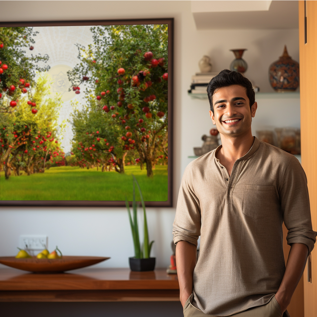 The pomegranate tree image consists of 108 powerful bhagwad geeta mantras, which further enhances its energy and impact.
